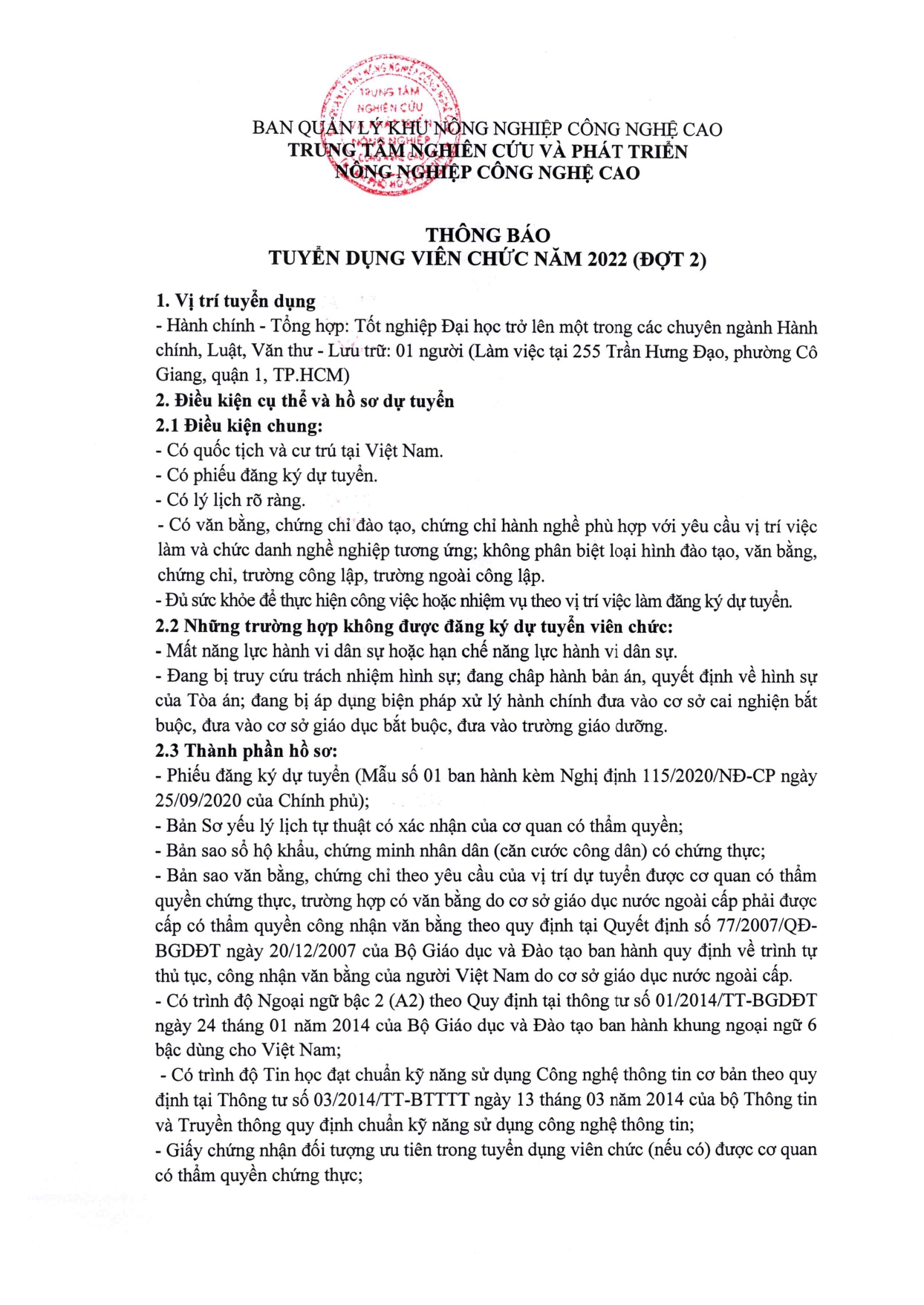 THÔNG BÁO TUYỂN DỤNG VIÊN CHỨC NĂM 2022