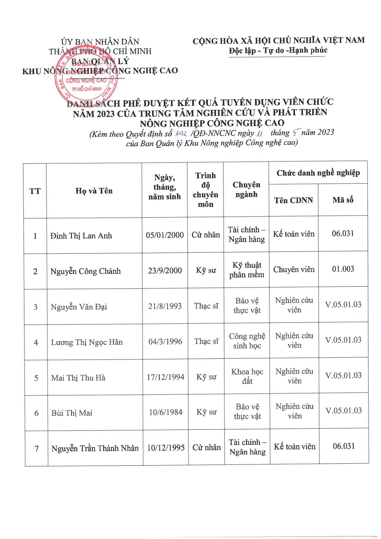 THÔNG BÁO KẾT QUẢ TUYỂN DỤNG VIÊN CHỨC 2023