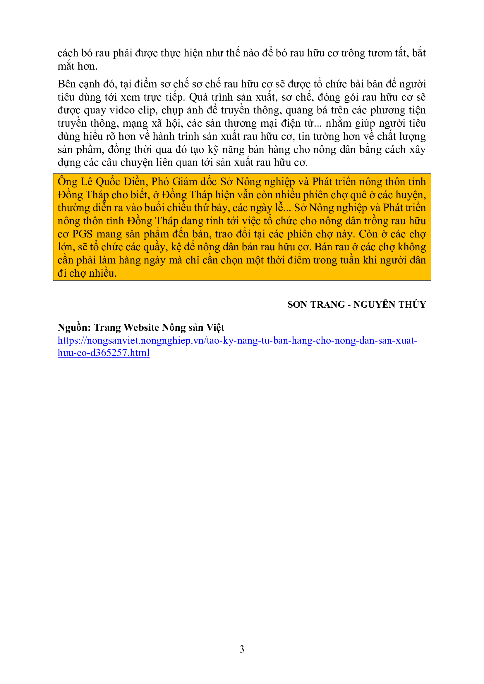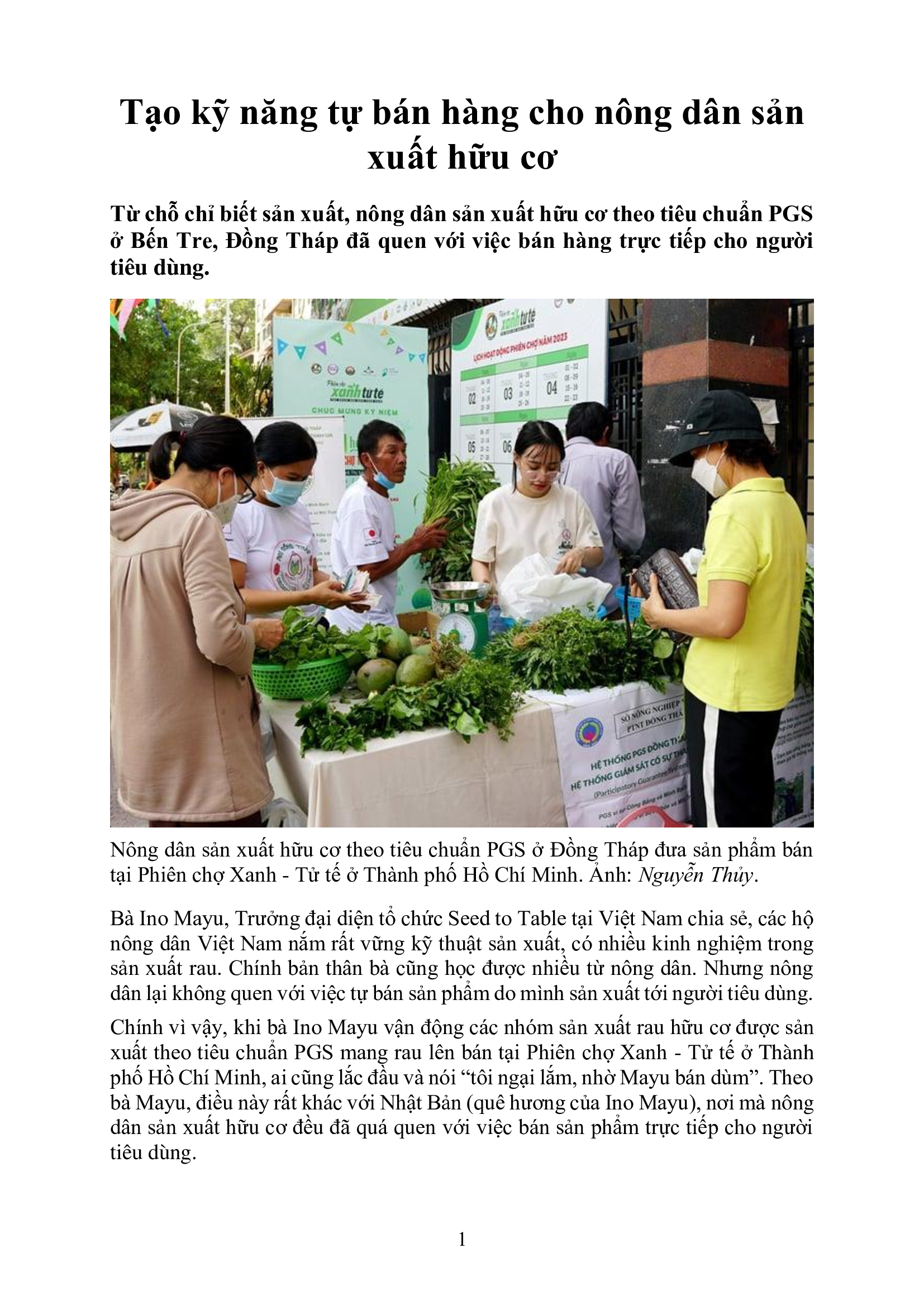Tạo kỹ năng tự bán hàng cho nông dân sản xuất hữu cơ