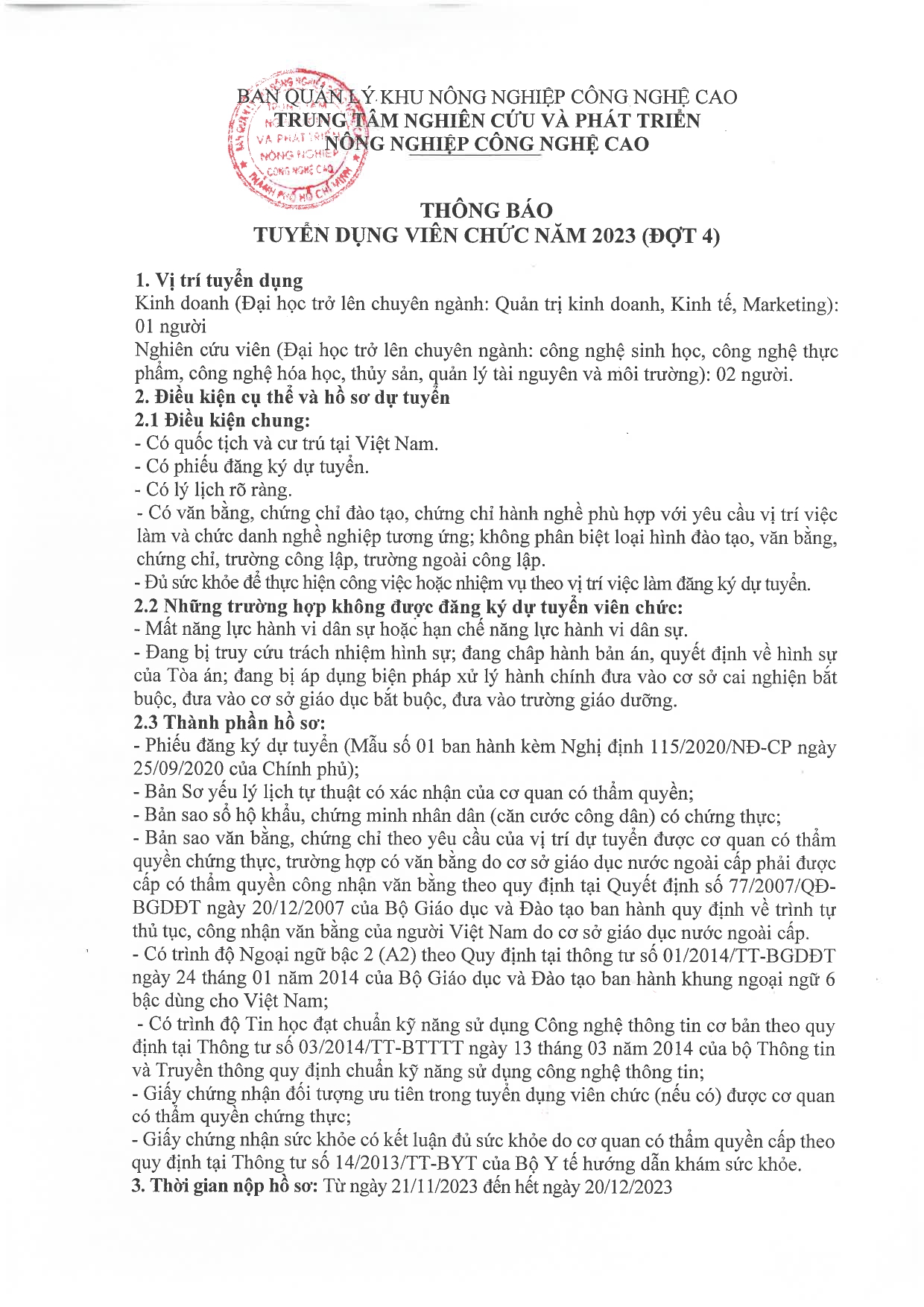 THÔNG BÁO TUYỂN DỤNG VIÊN CHỨC NĂM 2023 (ĐỢT4)