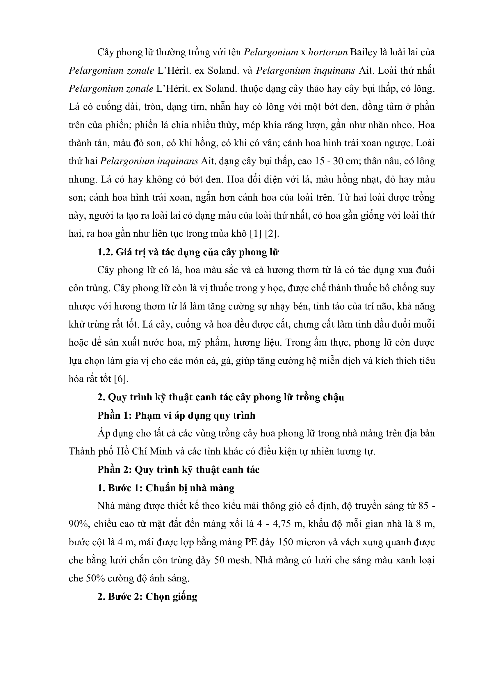 Quy trình kỹ thuật canh tác cây phong lữ (Pelargonium x hortorum Bailey) trồng chậu